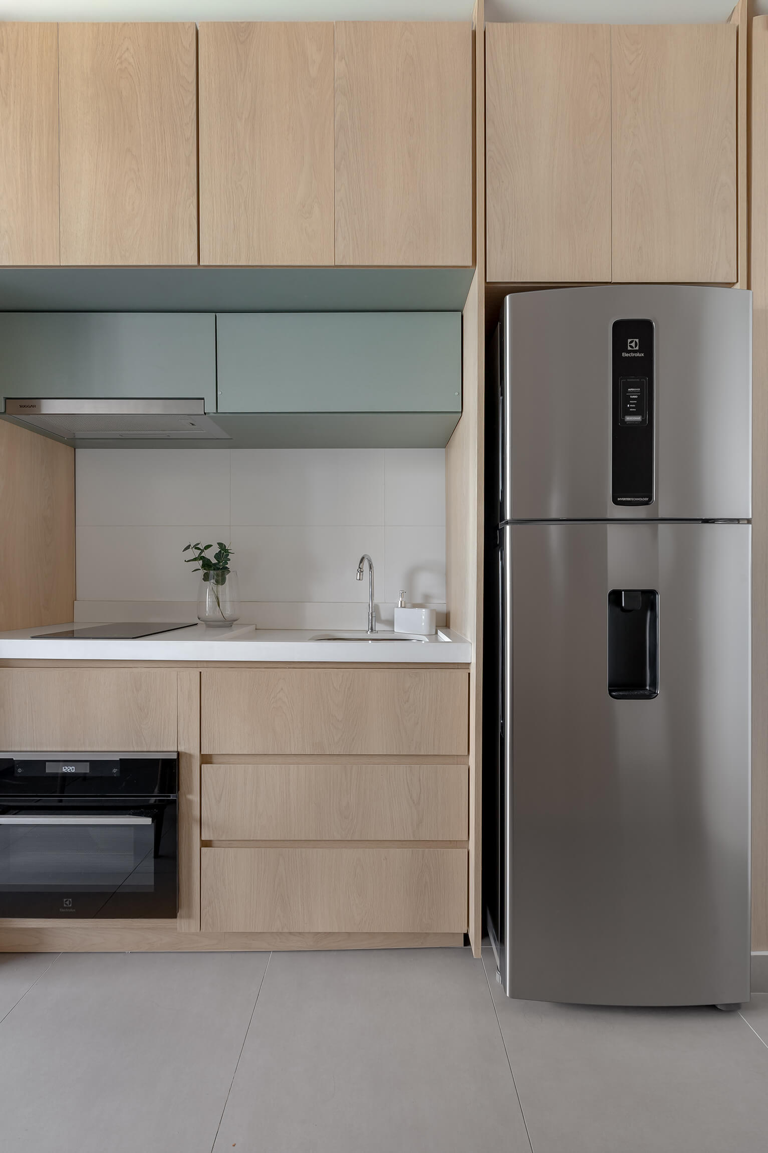 As fotografias mostram a inteligência do projeto. Cada detalhe foi pensado para maximizar a sensação de espaço, criando um ambiente que é ao mesmo tempo funcional e bonito. É um exemplo de como a arquitetura pode transformar limitações em oportunidades.